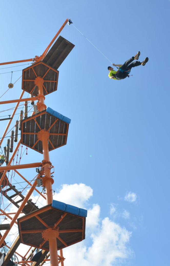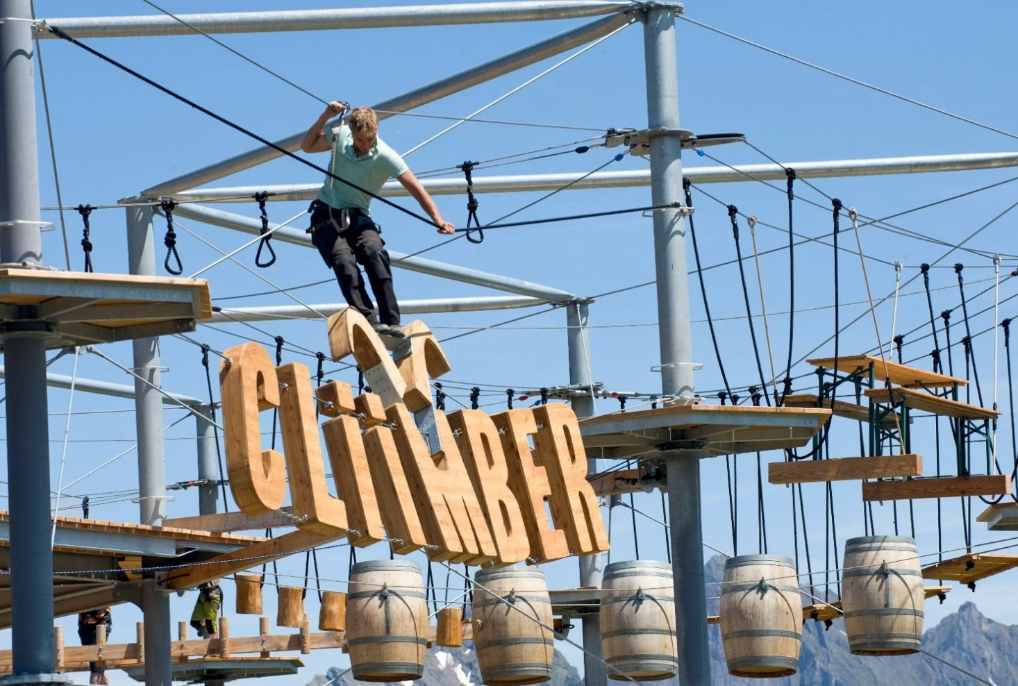 全能型高空绳索课程可搭配管道滑道、垂降站、巨型秋千等多种大型附加设施拓展玩法,让体验更富刺激与趣味。攀爬塔顶部的观景平台始终是一大亮点:KT-12与KT-10型号标配七根支撑杆的观景平台,是攀岩者观赛、休憩的理想之选。它既能作为赛事场地,也可接待访客,为常规攀岩项目创造额外营收。