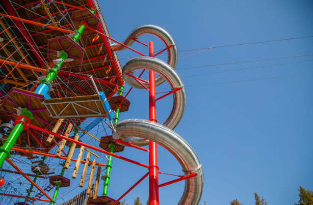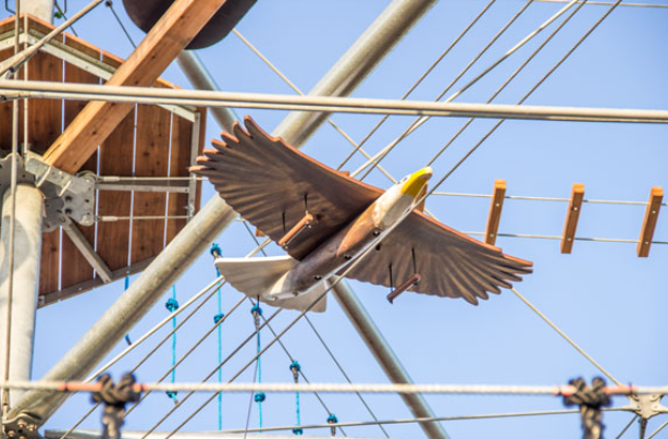 KT-18可扩展各种附加组件,增添趣味与动作。由于体积庞大,任何层级的步道平台也可安装。如有需要,也可以在结构顶部集成观景阳台平台。此外,22米高的管道滑梯或绳降站也能为访客带来更多乐趣和刺激。